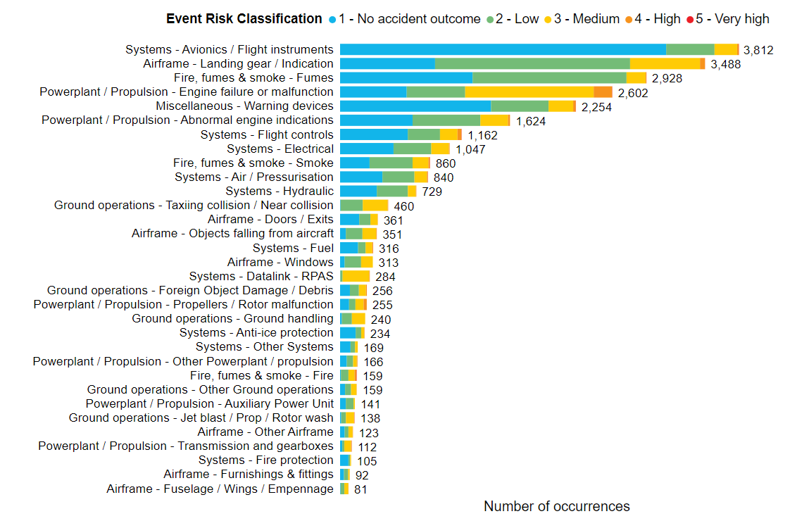 The most common type for accidents and serious incidents from 2014 to 2025 were: